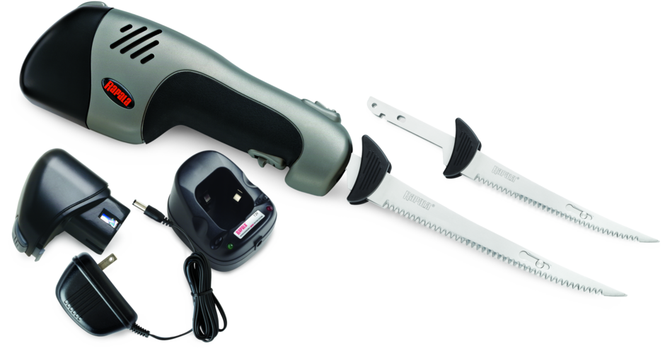 With no cords in the way, the Rapala® Deluxe Cordless Fillet Knife makes even the toughest filleting chores a quick and easy task. Two removable rechargeable battery packs provide an ample power source to complete the job. Charger base allows charging of one battery to a full charge in 3 hours and 45 minutes, while you put the other to use, or pre-charge for a fast shore lunch preparation in the field. Both a 6" and 7-1/2" reciprocating style blades are included. The whole set packs neatly into a compact carrying case so you can bring the ease of filleting everywhere. Premium motor will provide years of service.Case: Blow Molded Plastic. Blades: Stainless Steel.